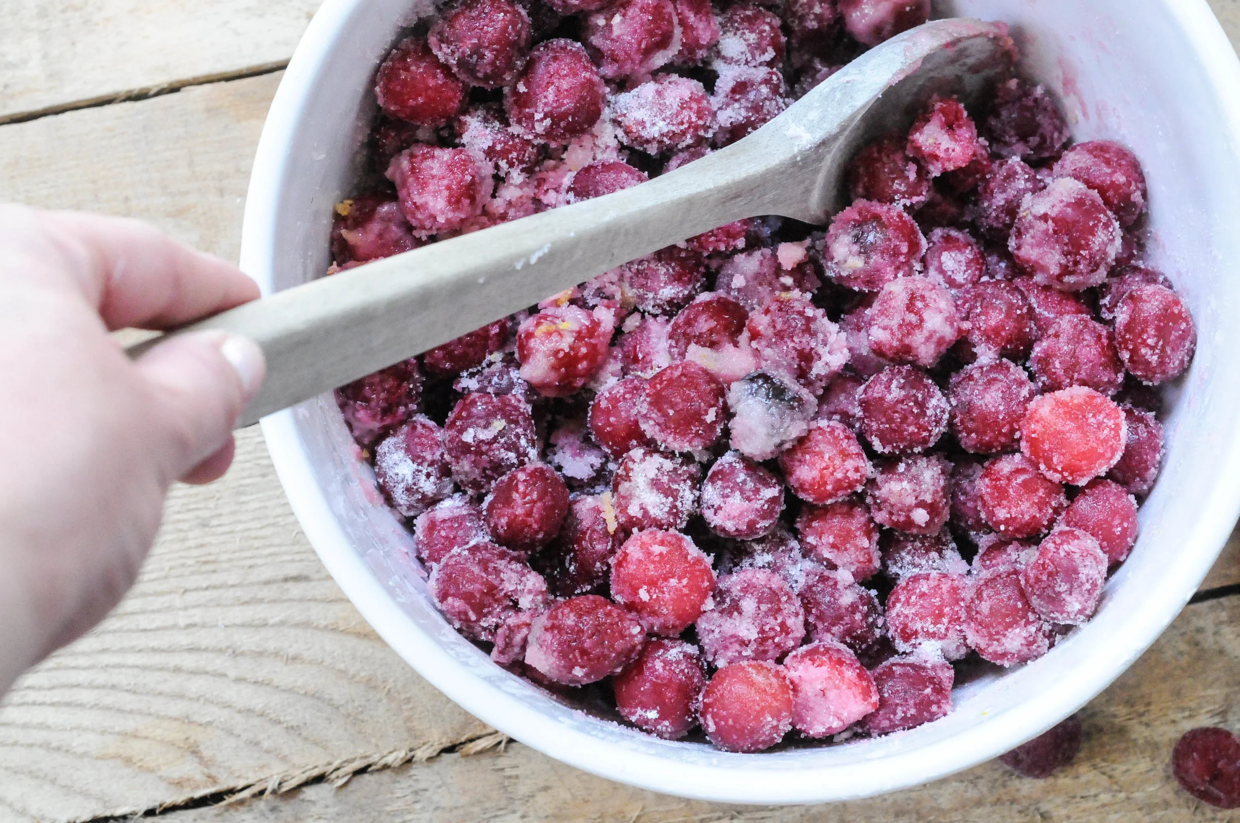 6 heaping cups of frozen sour pie cherries, slightly thawed (you can also use fresh sour cherries, pitted - about 6 cups)